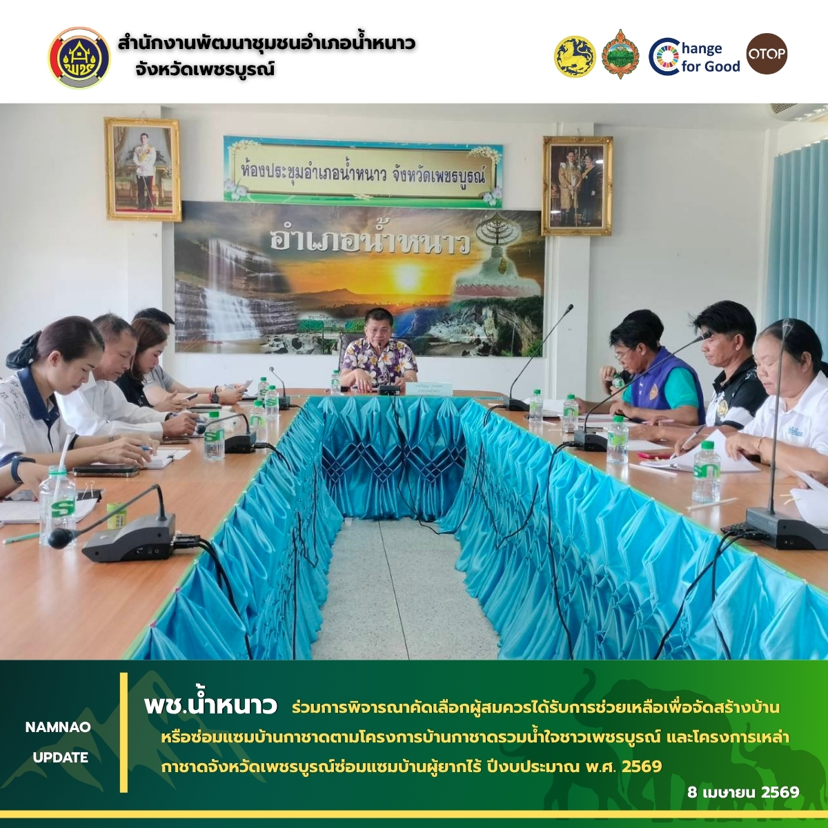 วันพุธที่ 8 เมษายน 2569 เวลา 10.00 น. ณ ห้องประชุม ชั้น 2 ที่ว่าการอำเภอน้ำหนาว